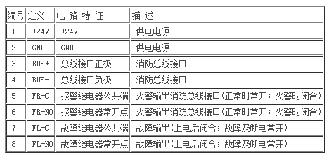 四.Flax53點型紅外火焰探測器接線方式;所有信号線和電源線宜採用截面積大於(yú)1.0mm的導線,並(bìng)嚴格按規範要求進行布線,其中探測器外殼應良好接地。探測器接線定義見下表: