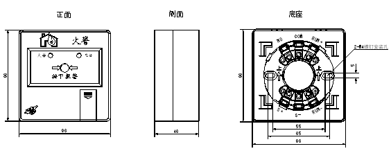 三、J-SAP-EI6021型手動(dòng)火災報(bào)警按鈕外形及安裝尺寸