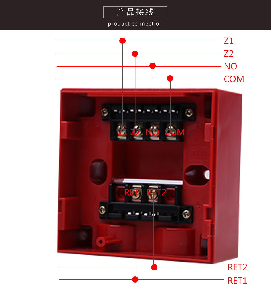 線制:與控制器採(cǎi)用無極(jí)性二總線連接,若需實現直接起泵控制,需将消火栓按鈕與泵控制箱採(cǎi)用二線連接