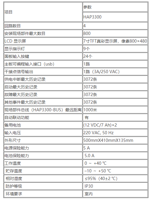 三、HAP3300消防設備電源狀态監控器性能參數