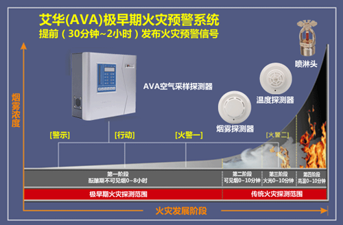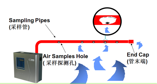 吸氣式感煙火災探測器跟傳統的(點型)煙霧探測器有所不同。空氣採樣系統由在天花闆上方或下方每隔幾米平行安裝的管道組成。在每根管子的上面,每隔幾米就鑽有一個小孔,這些小孔很均勻的在天花闆上分布,這樣就形成瞭(le)一組矩陣型的空氣採樣孔。利用探測主機内部抽氣泵所産生的吸力,空氣樣品或煙霧通過這些小孔被吸入管道中並(bìng)傳送到達探測主機内部的高靈敏度煙霧探測腔檢測空氣樣品中的煙霧顆粒濃度,可實現未現火苗時提前報警,以達到在損失未發生時就已扼殺在搖籃中。