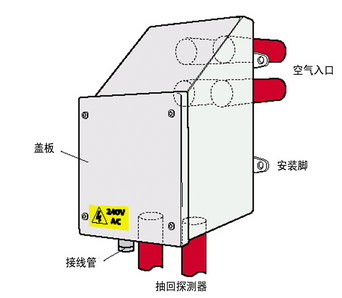 如果沒有維修空間,加熱器和GST空氣採樣式感煙火災探測報警器都可以安裝在建築物牆上的避免氣候影響的防護箱内。