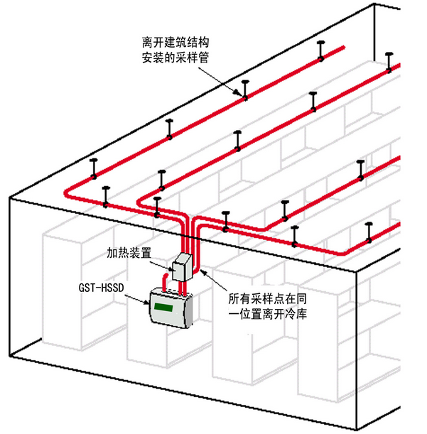 本指南用於(yú)幫助設計者針對冷庫這種特殊的環境條件設計-有效和-可靠的煙霧探測系統。我們總是敦促設計者使其設計的空氣採(cǎi)樣式煙霧探測系統達到或超過--消防規範、标準或規則的規定,但在這一應用中,要做到這一點相當困難。當設計不能滿足一般公認的參數指标時,設計者應該與用戶、保險公司或權威機構針對其中的難點進行讨論。以下吸氣式感煙火災探測器以GST-HSSD(編輯注:此型号目前已經停産,實際可用其他型号替代)爲例。
