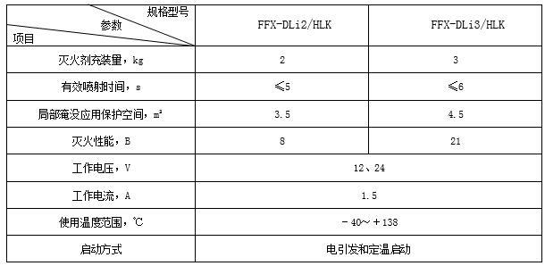 車(chē)用锂電池箱D類幹粉自動滅火裝置主要技術參(cān)數
