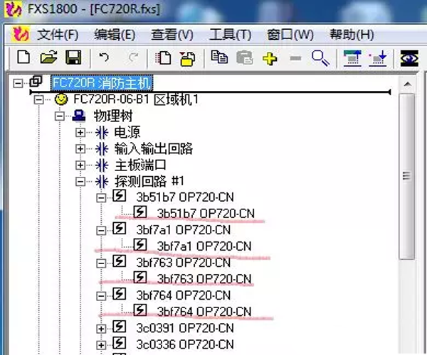 在調(diào)試軟件上看,每一個感煙探測(cè)器OP720下面都有一個通道,如圖