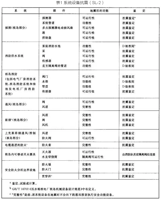 核電廠的火災自動報(bào)警系統需滿足相關質保等級的要求並(bìng)且系統在運行階段要接受定期試驗檢查,另外,所有設備應經過抗震試驗鑒定並(bìng)能承受極限安全地震(SL-2)荷載,且保證其可運行性(見下表1)。