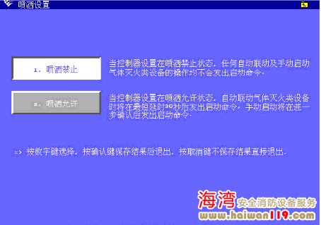 在設置裏面進入“6、噴灑設置”界面,輸入氣體操作密碼及更高級(jí)别密碼解鎖後(hòu),可将控制器設置爲噴灑禁止或噴灑允許狀态。