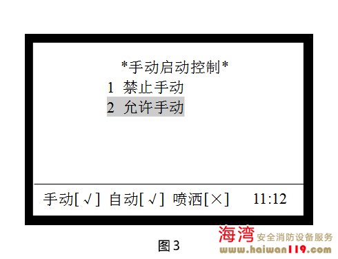 在圖2界面下,按1 進入“手動啓動控制”界面如圖3所示。