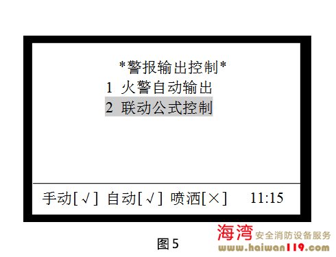“警報輸出控制”是指對控制器的警報輸出接口進行設置,可以設置爲火警自動輸出及聯動公式控制方式。