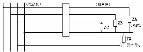 4)互感器用戶側零線有負載接到互感器前的相線,即保護區域以外的其他線路與用戶側“共零”。這種爲瞭(le)敷設方便的不規範線路安裝非常常見。哪怕隻是走廊或強電電井裏的幾個燈泡,就足以造成探測器報(bào)警(一個25W的燈泡産生的電流在200mA左右)。
