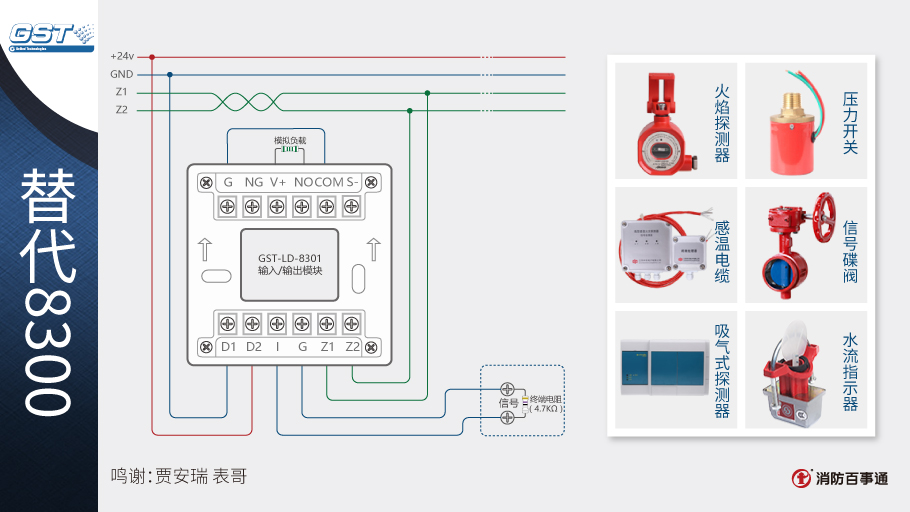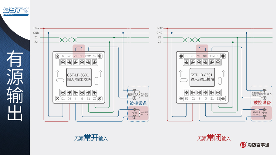 1、由於(yú)聲光、警鈴等設備(bèi)無反饋信号,故模塊的反饋端I、G接4.7KΩ終端電阻。