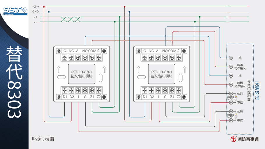 1、海灣8301模塊可以替代海灣的8303模塊控制防火卷簾,兩個8301模塊相當於1個8303模塊。
